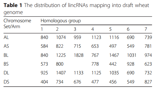 2、這種比對結果顯示:響應真菌感染表達的lincRNAs能比對到小麥所有亞基因組上,說(shuō)明小麥響應真菌感染由A、B、D三個(gè)亞基因組協(xié)同發(fā)揮作用。