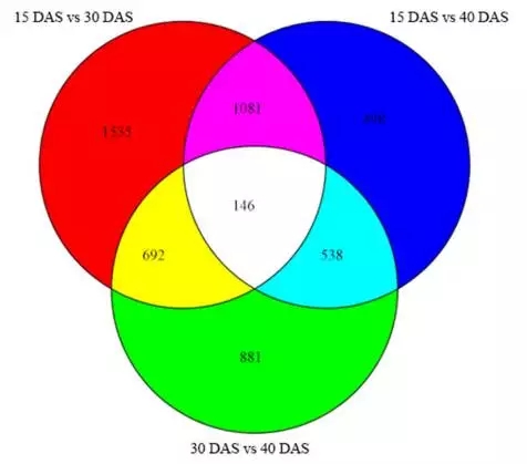 3.為了鑒定在洋蔥球莖膨脹過(guò)程中活躍的通路,將得到的unigenes與KEGG數據庫中標準參考通路進(jìn)行比對。15 DAS vs. 30 DAS注釋到了95個(gè)pathway,15 DAS vs. 40 DAS 注釋到了79個(gè)pathway,30 DAS vs. 40 DAS注釋到了86個(gè)pathway。共有6113個(gè)unigenes注釋到了120條KEGG通路中?!暗矸酆驼崽谴x”構成了各樣本文庫中的初級代謝途徑,并有可能在球莖膨大和發(fā)育過(guò)程中活性更高。