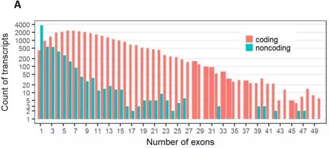對非編碼轉錄本基因進(jìn)行分類(lèi),1,794個(gè)為基因間區、3,558個(gè)基因定位于可編碼轉錄本。