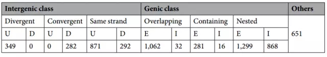 Table 2. 分類(lèi)非編碼轉錄本(U:上游;D:下游;E:外顯子;I:內含子)