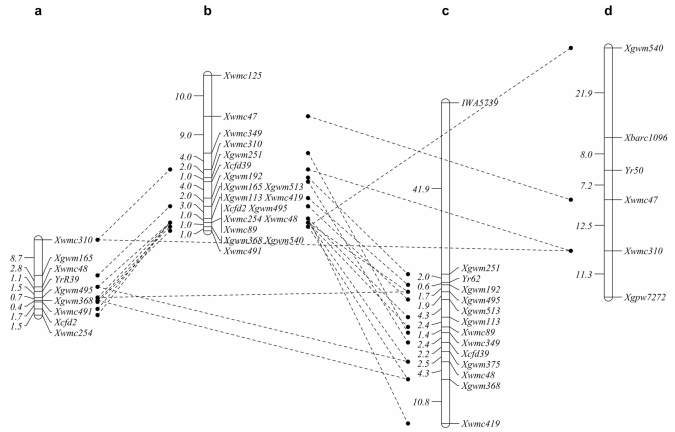 普通小麥是主要的糧食作物之一,但由于小麥條銹病菌的侵害,使得小麥產(chǎn)量逐年降低,尤其是在西南和西北地區。條銹病抗性分為全生育期抗性(ASR,包括幼苗和成株)和成株抗性(APR),前者通常是單個(gè)主效基因控制的,是傾向于針對某一特定菌種而產(chǎn)生的抗性,而后者的抗性則不針對某一特定菌種且為數量遺傳,其保護水平通常是不完全的,并受生長(cháng)階段,溫度,濕度和接種量的影響。因此,定位這兩種小麥抗條銹病抗性基因是當務(wù)之急。
