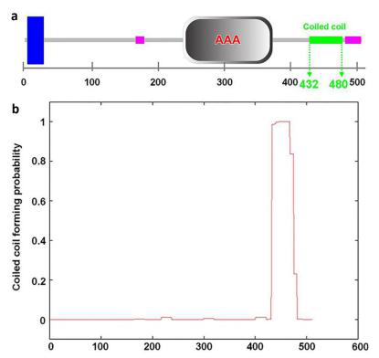 基因組和cDNA序列分析顯示,CsARN6.1擁有2個(gè)外顯子,被預測為編碼含有511個(gè)氨基酸殘基的AAA-ATPase結構域蛋白,該蛋白中含有一個(gè)coiled-coil結構域(圖6),前期關(guān)聯(lián)到的SNP02即位于該結構域,由于該SNP的突變導致Asp被替換成Gly,Zaoer-N為CsARN6.1^Asp型,表現出較強的ATP酶活性,而Pepino為CsARN6.1^Gly型,幾乎沒(méi)有ATP活性(圖7)。