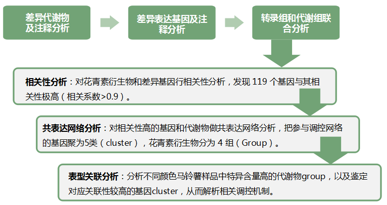 上期小編和大家分享了百邁客成功案例-轉錄組和代謝組解析風(fēng)信花色變化分子機制,大家可以發(fā)現,其中,代謝組并沒(méi)有走普通轉錄組項目的套路(基于測序結果,采用生物信息的手段,挖掘決定表型關(guān)鍵基因),而是采用靶向檢測幾種代謝物的方法,從代謝組角度進(jìn)一步驗證兩種花色風(fēng)信子花青素合成通路相關(guān)的基因。那么,隨著(zhù)代謝組的不斷發(fā)展,目前經(jīng)典代謝組分析方法,更多的是傾向于基于代謝物檢測結果,通過(guò)生物信息分析的手段,深入挖掘與表型相關(guān)的關(guān)鍵代謝物,進(jìn)而輔助轉錄組挖掘決定表型的關(guān)鍵基因。今天,我們通過(guò)一篇經(jīng)典案例,來(lái)一探轉錄組和代謝組聯(lián)合分析的套路。