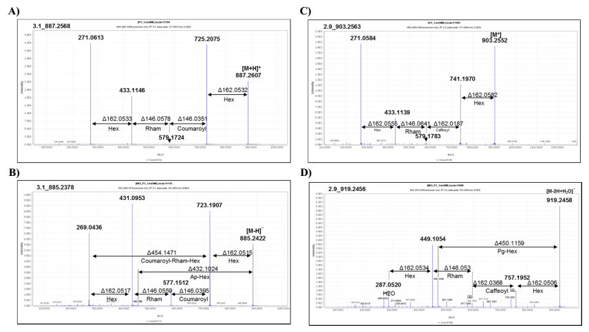 圖3 黃酮類(lèi)化合物的二級質(zhì)譜分析