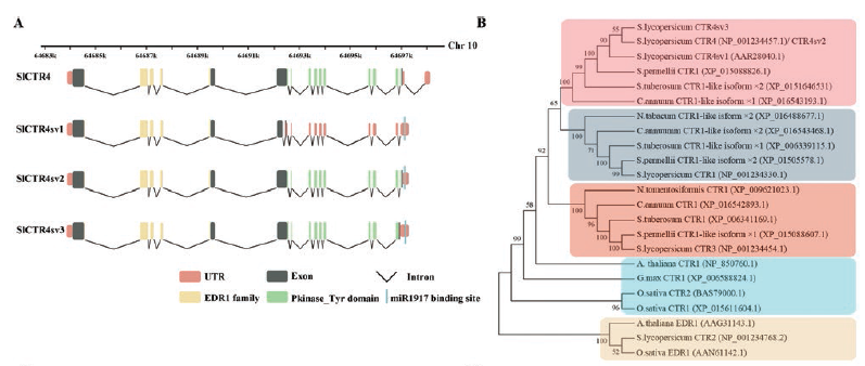 Wang Y, Zou W, Xiao Y, et al. MicroRNA1917 targets CTR4 splice variants to regulate ethylene responses in tomato.[J]. Journal of Experimental Botany, 2018.