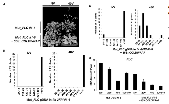 比如這篇發(fā)表在Developmental Cell的章中對lncRNA COLDWRAP的RNAi敲除品系表現出減少的春化反應,將COLDWRAP轉入COLDWRAP突變體后,COLDWRAP表達恢復了春化反應。