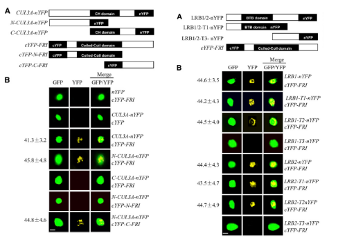 之后在體內,用BiFC在體內驗證定位、酵母雙雜交、GST pull-down結果,用co-IP分析瞬時(shí)表達FRI和CUL3A再次驗證相互作用。