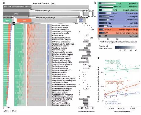 圖1. 上市藥物影響代表性人類(lèi)腸道菌種的系統分析