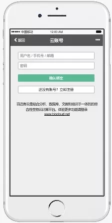 2.點(diǎn)擊屏幕右下方“更多”按鈕,選定云賬號綁定頁(yè)面,輸入云賬號和密碼
