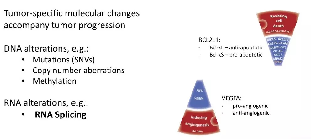 另外一個(gè)結腸癌標志物相關(guān)的研究中,Malgorzata A Komor等[8]通過(guò)整合RNA-seq、Iso-seq及LC-MS/MS數據建立了一個(gè)適于臨床研究的蛋白組數據分析流程,從分析結果中可以發(fā)現除了DNA水平上的變異,RNA水平上發(fā)生的異常剪接也會(huì )導致癌癥的發(fā)生發(fā)展,比如在結直腸癌(CRC)中,SRSF1導致RAC1中exon 4的保留,產(chǎn)生了一種有助于癌細胞存活的Rac1b isoform;BCL2L1的可選擇性5 ‘ s端剪接事件的發(fā)生助于抵抗細胞死亡使;VEGFA的可選擇性3 ‘端剪接事件會(huì )導致癌癥中抗血管生成的isoform的轉變,并誘導血管生成。