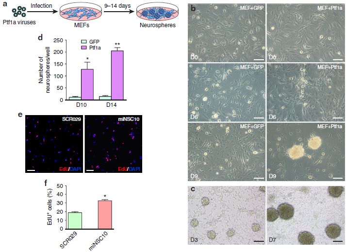 圖1 ptf1a直接將MEF轉化為神經(jīng)球