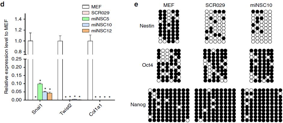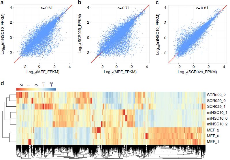 材料:35000個(gè)MEF細胞,50,000個(gè)miNSC10細胞,50,000個(gè)SCR029細胞。測序平臺:Illumina HiSeq X Ten。