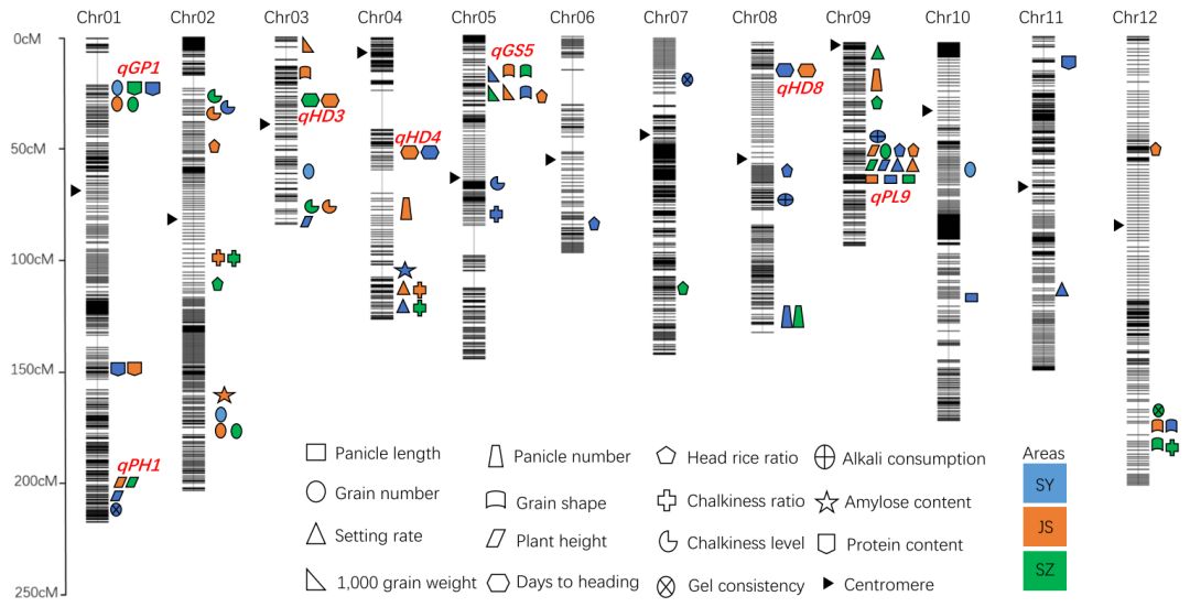 2、不同稻區多年的表型數據,定位到了多個(gè)QTL簇,從而將研究重點(diǎn)放在這些QTL簇上。