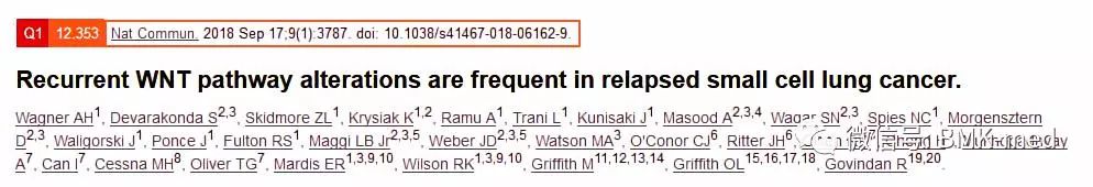 ? ? ? 近日,Alex H. Wagner等研究者發(fā)表在“NATURE COMMUNICATIONS”上的文章中,作者通過(guò)高通量測序對SCLC的化療耐受性的分子機制進(jìn)行了研究,作者對12例來(lái)自處于診斷時(shí)期和復發(fā)時(shí)期的患者的配對SCLC腫瘤樣本,以及18例患者的非配對復發(fā)樣本,進(jìn)行全外顯子組測序。在復發(fā)樣本鑒定到了多個(gè)體細胞拷貝數變異,包括ABCC1的增加,以及MYCL、MSH2MSH6的缺失。作者還對30例患者中18例復發(fā)樣本進(jìn)行了腫瘤RNA測序。結果表明,ASCL1低表達亞型和WNT激活在復發(fā)樣本中富集。通過(guò)敲低APC激活化療敏感性SCLC細胞系中的WNT信號,可以誘導產(chǎn)生化療耐受性。此外,體外誘導的耐化療細胞系中,WNT活性增加??偟膩?lái)說(shuō),此研究結果表明WNT信號激活是復發(fā)性SCLC化療耐受性的一種分子機制。