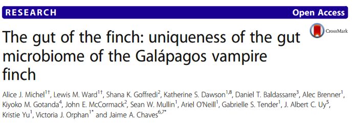 達爾文雀(Darwin’sfinches),原產(chǎn)于加拉帕戈斯群島的19種雀形目鳥(niǎo)類(lèi),由于生態(tài)地域隔離、特異喙結構以及攝食習性(種子、蟲(chóng)子及血液)差異,導致他們形成了“適應輻射”(adaptive radiation)。盡管人們對這些標志性鳥(niǎo)類(lèi)進(jìn)行過(guò)調查,但它們的腸道菌群結構及影響菌群結構的因素尚未被探索。本文作者從達爾文雀的種類(lèi)差異、生態(tài)地理位置以及攝食習性3方面進(jìn)行調查,研究成果于2018年發(fā)表在國際微生物TOP期刊Microbiome,該期刊的近五年影響因子為10.9分。