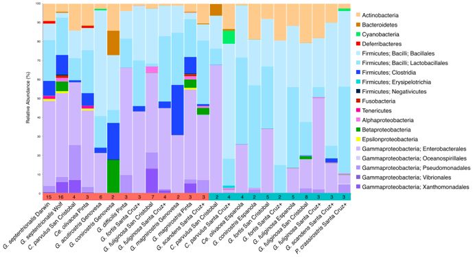 ?達爾文雀的核心腸道微生物為厚壁菌門(mén)(Firmicutes )、變形菌門(mén)(Proteobacteria)和放線(xiàn)菌門(mén)(Actinobacteria)