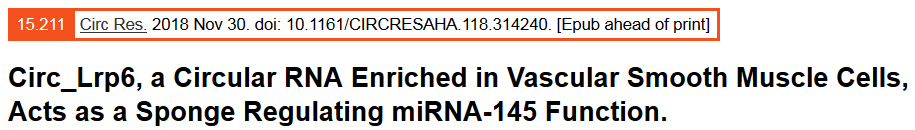 circ_Lrp6與miR-145直接結合:AGO2 IP實(shí)驗驗證二者與AGO2結合(circRNA與miRNA的結合由AGO2介導);RIP實(shí)驗驗證二者之間直接結合;等。