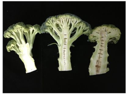 西蘭花是一種重要的蔬菜作物,其花頭富含維生素、礦物質(zhì)和葡聚糖苷等次生代謝產(chǎn)物,營(yíng)養價(jià)值高。但是在西蘭花的商業(yè)生產(chǎn)中經(jīng)常出現空心莖現象——靠近空腔的髓組織會(huì )被吹散甚至變黑。出現這種現象的花頭不受消費者所喜愛(ài),從而給生產(chǎn)者帶來(lái)了嚴重的經(jīng)濟損失。針對這種現象,作者利用西蘭花DH群體構建了高質(zhì)量的遺傳圖譜,并在遺傳圖譜中鑒定出控制空心莖性狀的位點(diǎn),進(jìn)而找到有利基因應用于育種中。