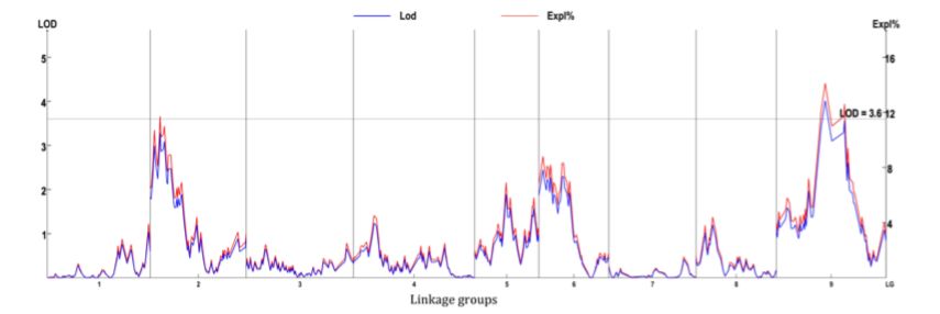 方法:SLAF測序,HighMap構建遺傳圖譜,IciMapping進(jìn)行QTL定位,MapQTL進(jìn)行BLUE分析及QTL定位