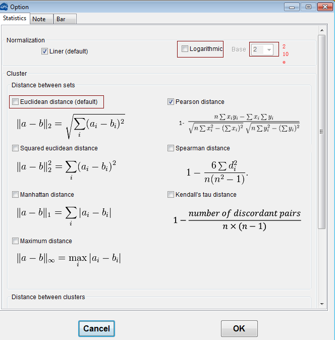 定義顏色標尺連續或不連續,右鍵Set up bar;Set up statistic: 設置繪制此熱圖使用到的數學(xué)上的屬性(歸一化和聚類(lèi)方法),一般二代數據選擇對數歸一化方式。
