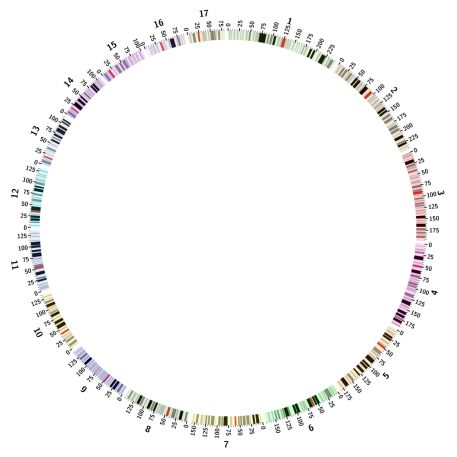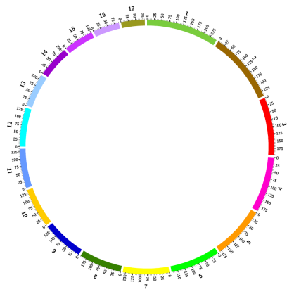 如果想自定義染色體排列順序,可以使用chromosomes_order參數來(lái)設定,假設在上圖的基礎上,想將hs11,hs12,hs13染色畫(huà)在前面,可以設置chromosomes_order=hs11;hs12;hs13;hs1;hs2;hs3;hs4;hs5;hs6;hs7;hs8;hs9;hs10;hs14;hs15;hs16;hs17;畫(huà)出的圖如下: