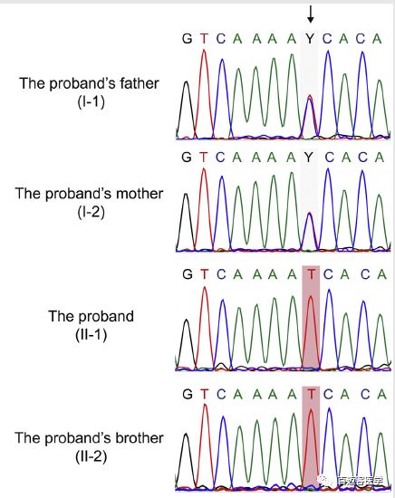 對兩兄弟及其父母進(jìn)行了全外顯子組測序WES,平均覆蓋深度為120×,目標區域覆蓋度為99.87%。排除在任何變異數據庫中MAF>0.05的變異,錯義突變、無(wú)義突變、移碼突變和剪接位點(diǎn)突變等優(yōu)先保留。此外,SIFT、PolyPhen-2和Mutation Taster等同時(shí)預測為具有潛在有害性的變異也被保留用于進(jìn)一步評估。