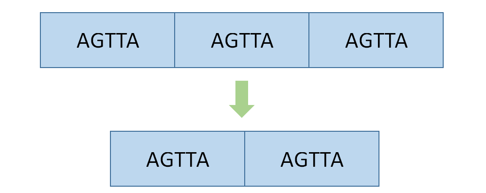 主要指1-6bp?短串聯(lián)重復序列STR(short tandem repeat)、微衛星不穩定性MSI(microsatellite instability)以及6bp?以上可變串聯(lián)重復序列VNTR(Variable Number of Tandem Repeats)。小編畫(huà)個(gè)圖讓大家直觀(guān)的感受一下,是不是一下子就明白啦!這種重復序列的變異已經(jīng)發(fā)現和40多種神經(jīng)肌肉和神經(jīng)退行性疾病相關(guān)。
