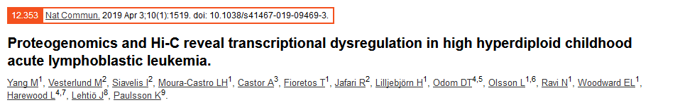 Hi-C輔助揭示超二倍體兒童急性淋巴細胞白血病的轉錄失調