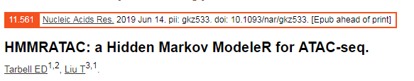 Evan D Tarbell,?Tao Liu.?HMMRATAC: a Hidden Markov ModeleR for ATAC-seq.?Nucleic Acids Research, 2019.