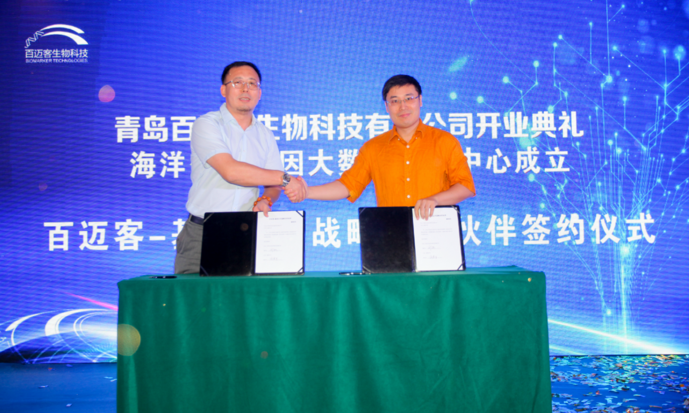 為了便于更好的服務(wù)海洋科研事業(yè)及科研人員對大數據應用的科研新需求,百邁客生物入駐青島,并建立了“海洋生物基因大數據研究中心”。北京百邁客生物科技有限公司營(yíng)銷(xiāo)中心總監宋軍女士、中國海洋大學(xué)食品科學(xué)與工程學(xué)院院長(cháng)薛長(cháng)湖老師為中心揭牌。