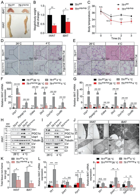 Fig2 Tfr1基因缺失可減少冷誘導的脂肪組織產(chǎn)熱