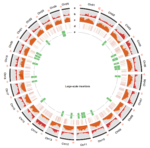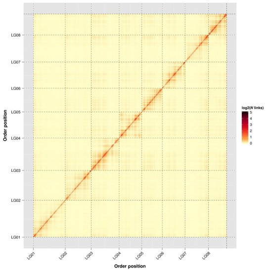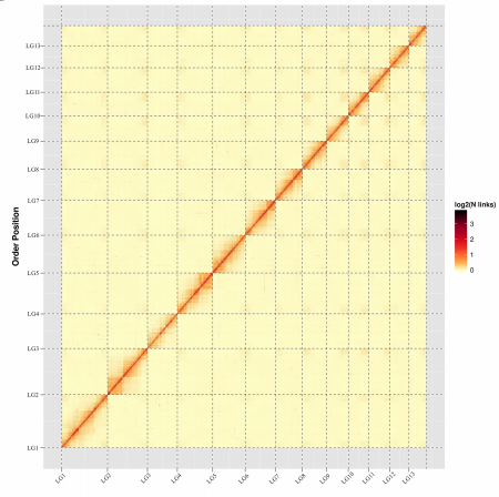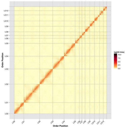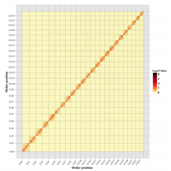 2019年9月30日,福建農林大學(xué)基因組研究中心明瑞光教授團隊聯(lián)合多個(gè)單位共同合作的紅苞鳳梨研究成果在國際知名期刊Nature Genetics在線(xiàn)發(fā)表。該研究獲得了513 Mb基因組序列,并通過(guò)百邁客Hi-C實(shí)驗技術(shù)助力,最終將456 Mb基因組定位到25條染色體上(掛載率約88.8%),完成了菠蘿基因組學(xué)領(lǐng)域的再一次突破[2]。