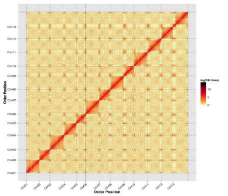 Hi-C測序深度及掛載率:~38.56×;99.25%
