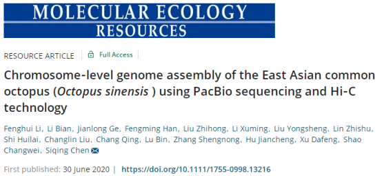 近日,中國水產(chǎn)科學(xué)研究院黃海水產(chǎn)研究所陳四清研究員團隊與北京百邁客生物科技有限公司合作完成了中國真蛸(Octopus sinensis)染色體水平基因組,相關(guān)研究成果發(fā)表在知名期刊Molecular Ecology Resources上。該研究是陳四清研究員團隊繼今年5月發(fā)表超高質(zhì)量綠鰭馬面鲀基因組后在水生生物基礎研究領(lǐng)域取得的又一項重要研究成果。