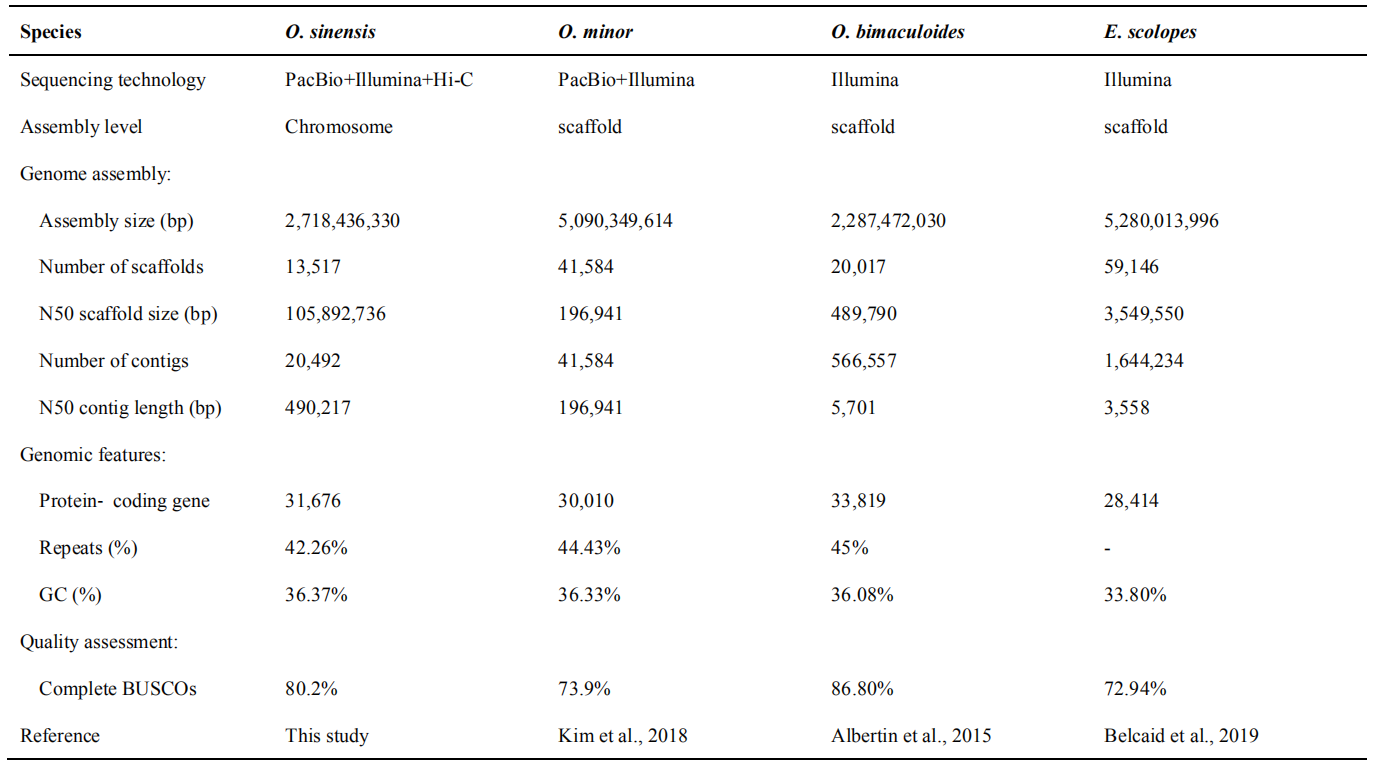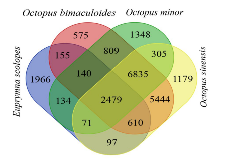 表2 中國真蛸基因組與已發(fā)表的頭足類(lèi)基因組比較