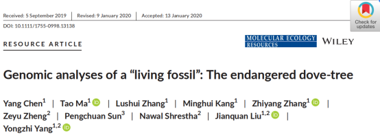 2020年1月四川大學(xué)劉建全團隊破譯了中國特有的瀕危物種珙桐(Davidia involucrata)基因組,相關(guān)成果發(fā)表在期刊Molecular Ecology Resources上。四川大學(xué)劉建全教授和楊勇志博士為該論文的通訊作者,陳陽(yáng)和馬濤教授為并列一作。該研究利用單分子實(shí)時(shí)測序SMRT和北京百邁客生物技術(shù)有限公司的Hi-C技術(shù)組裝了一個(gè)高質(zhì)量、染色體體水平的珙桐基因組,研究發(fā)現苞片中光合作用相關(guān)基因幾乎缺失或表達減少,而抗菌、抗冷、抗水等抗逆相關(guān)基因在苞片中高度表達,突出了苞片在保護花和吸引授粉者中的重要作用。有效群體大小等研究分析了珙桐的生存機制和瀕危原因。在未來(lái)氣候持續變暖的背景下,研究結果為保護這獨特的瀕危物種提供了依據。