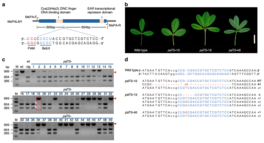 圖4 紫花苜蓿MsPALM1的基因編輯研究