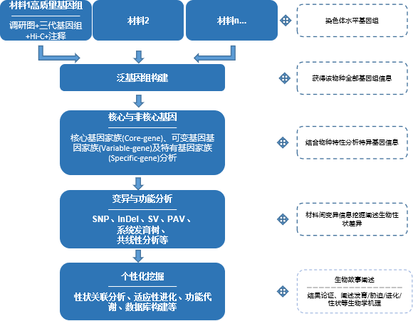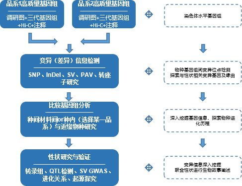 而親緣關(guān)系較近的種間材料同樣可以分別進(jìn)行denovo,并通過(guò)其間的變異分析掌控物種間的起源進(jìn)化及功能關(guān)系。