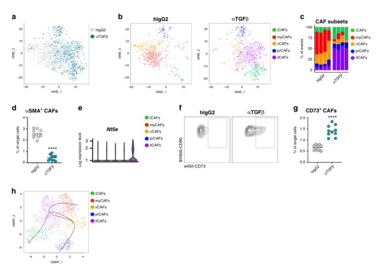 5.?TGFβ-阻斷導致myCAFs的丟失和CD73 +成纖維細胞的出現