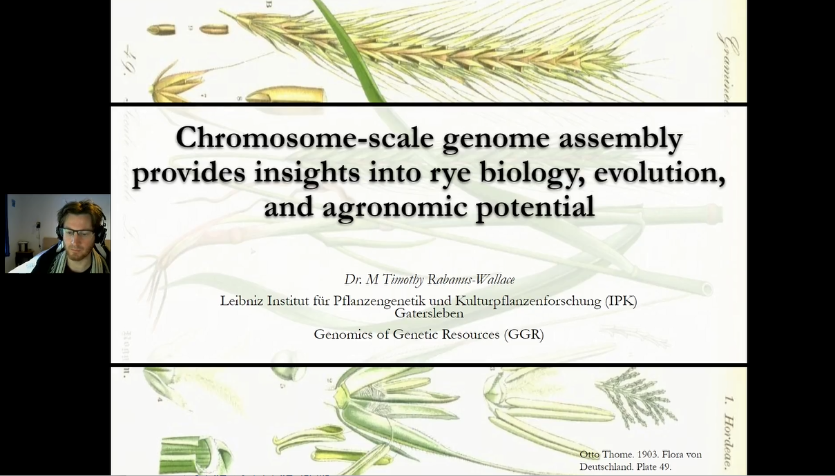 德國萊布尼茨植物遺傳與作物研究所Timothy Rabanus-Wallace 博士講述了黑麥基因組破譯所面臨的挑戰,并細致全面的講述了本次研究聯(lián)合短讀長(cháng)、Hi-C、10×Genomics、遺傳圖譜及光學(xué)圖譜等技術(shù)如何破譯歐洲栽培黑麥“Lo7”基因組。解析了黑麥基因間空間的演化,以及抗病、抗寒與自交不親和等生物學(xué)過(guò)程的發(fā)生與作用機制,揭示了黑麥易位染色體片段對小麥遺傳改良的重要作用。Timothy 博士表示,未來(lái)可以基于品種間Hi-C基因組定位,在威寧黑麥和Lo7基因組間進(jìn)行系統的結構比較,研究不同品系黑麥基因組間的大片段結構變異。
