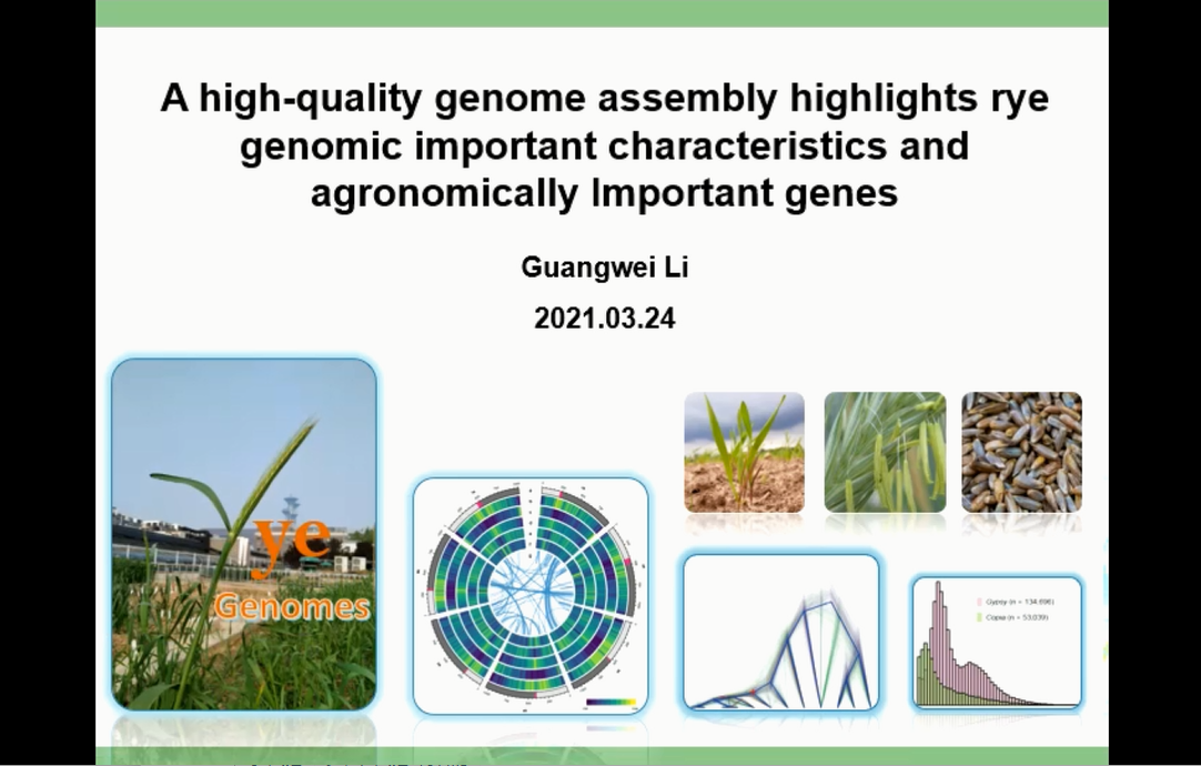 河南農業(yè)大學(xué)李廣偉博士系統解析了黑麥的演化歷史,展示了黑麥的分類(lèi)起源和世界遺傳資源分布,并表示黑麥作為全球麥類(lèi)基因資源具有重要的研究意義。通過(guò)中國栽培種“威寧黑麥”基因組的高質(zhì)量精細物理圖譜的構建,展示了其復雜的基因組特征、復雜的染色體變異以及淀粉合成、儲存蛋白、抽穗期及馴化等相關(guān)基因的詳細機制。最后李廣偉博士表示威寧黑麥基因組的破譯對深化比較谷類(lèi)基因組研究,加速黑麥及相關(guān)谷類(lèi)作物的遺傳改良具有重要價(jià)值。