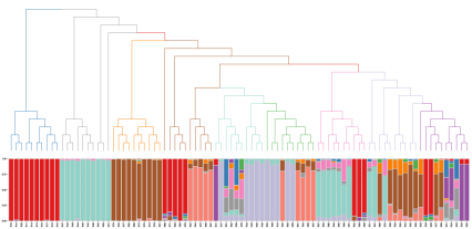 群體結構和系統發(fā)育樹(shù)組合圖: