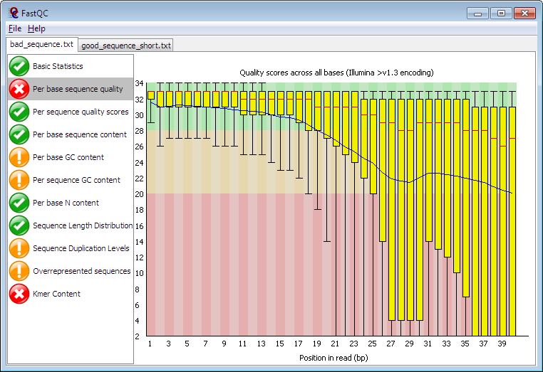 測序數據的質(zhì)量直接決定了數據分析的質(zhì)量及可靠性。低質(zhì)量的測序數據往往導致分析結果出現異?;蛘叻治鼋Y果中包含過(guò)多的假陽(yáng)性假陰性結果。利用FastQC可以快速實(shí)現對大量測序數據的質(zhì)量評估并生成分析結果報告。分析的指標完善,同時(shí)可以生成可視化的圖形報告,數據質(zhì)量結果一目了然。