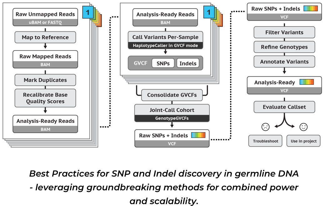 GATK全稱(chēng)是The Genome Analysis Toolkit,是Broad Institute(The Broad Institute, formerly the Broad Institute of MIT and Harvard, evolved from a decade of research collaborations among MIT and Harvard scientists.)開(kāi)發(fā)的用于二代重測序數據分析的一款軟件,里面包含了很多有用的工具,主要注重與變異的查找,基因分型且對于數據質(zhì)量保證高度重視。GATK是目前業(yè)內使用較廣的基因數據變異檢測工具。本次課程基于GATK的Best?Practices,實(shí)現從原始的比對結果開(kāi)始,到最終的高質(zhì)量突變位點(diǎn)的完整信息分析流程。