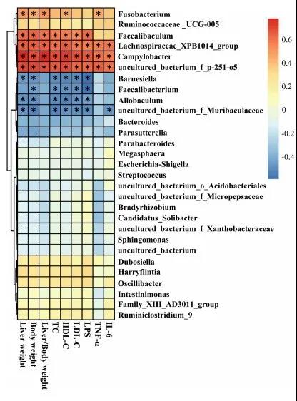 6.腸道菌群與NAFLD相關(guān)參數的相關(guān)性