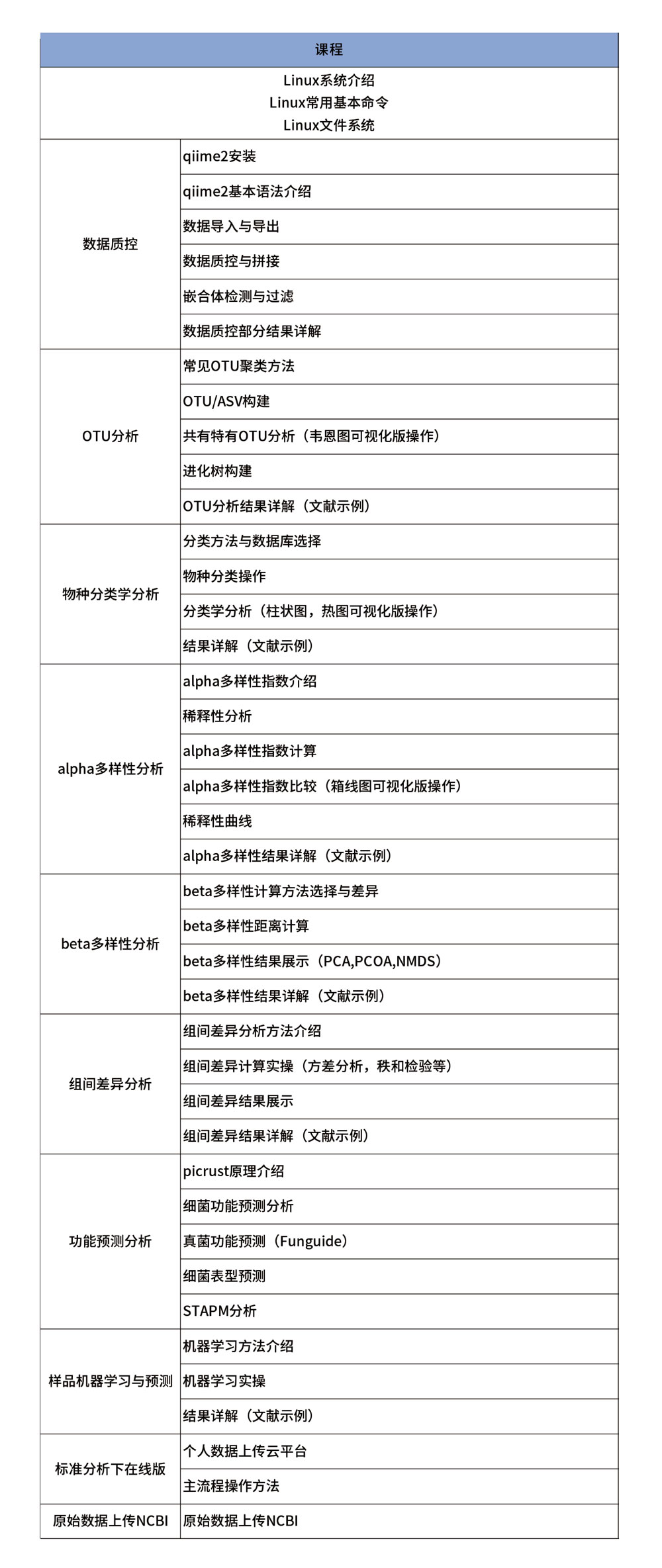 2、微生物多樣性生信分析課程