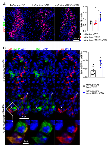 圖7.Insm1delSNAG突變小鼠中β細胞向δ細胞轉分化