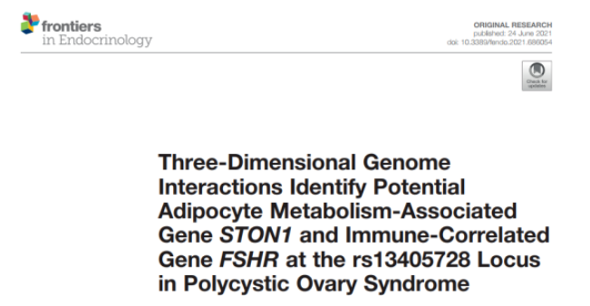 文獻名稱(chēng):Three-Dimensional Genome Interactions Identify Potential Adipocyte Metabolism-Associated Gene STON1 and Immune-Correlated Gene FSHR at the rs13405728 Locus in Polycystic Ovary Syndrome