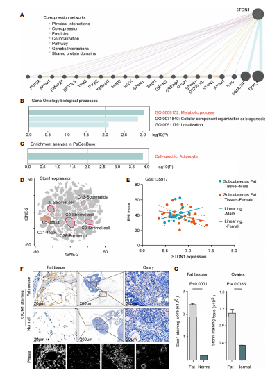 圖3. STON1 與脂肪細胞的代謝過(guò)程相關(guān),并在來(lái)自脂肪飲食小鼠的小鼠脂肪和卵巢組織中高度表達
