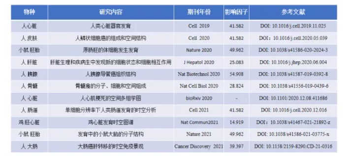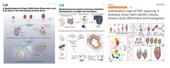 細胞在空間位置的異質(zhì)性,對于干細胞分化、組織發(fā)育和再生起著(zhù)重要作用,空間轉錄組技術(shù)已經(jīng)在人的胚胎心臟、胚胎腸道和雞的胚胎心臟發(fā)育中得到應用,探明了胚胎發(fā)育的動(dòng)態(tài)過(guò)程,空間組學(xué)發(fā)展可以清晰的描繪胚胎發(fā)育的藍圖。
